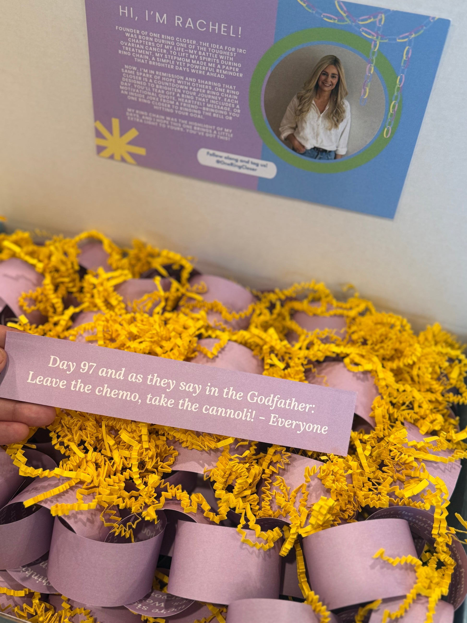 You pick the total number of rings — we’ll send you a super simple tool to jot down the custom messages you do want to include (whether it’s 5 or 25), and we’ll fill in the rest with meaningful messages from our premade collection.